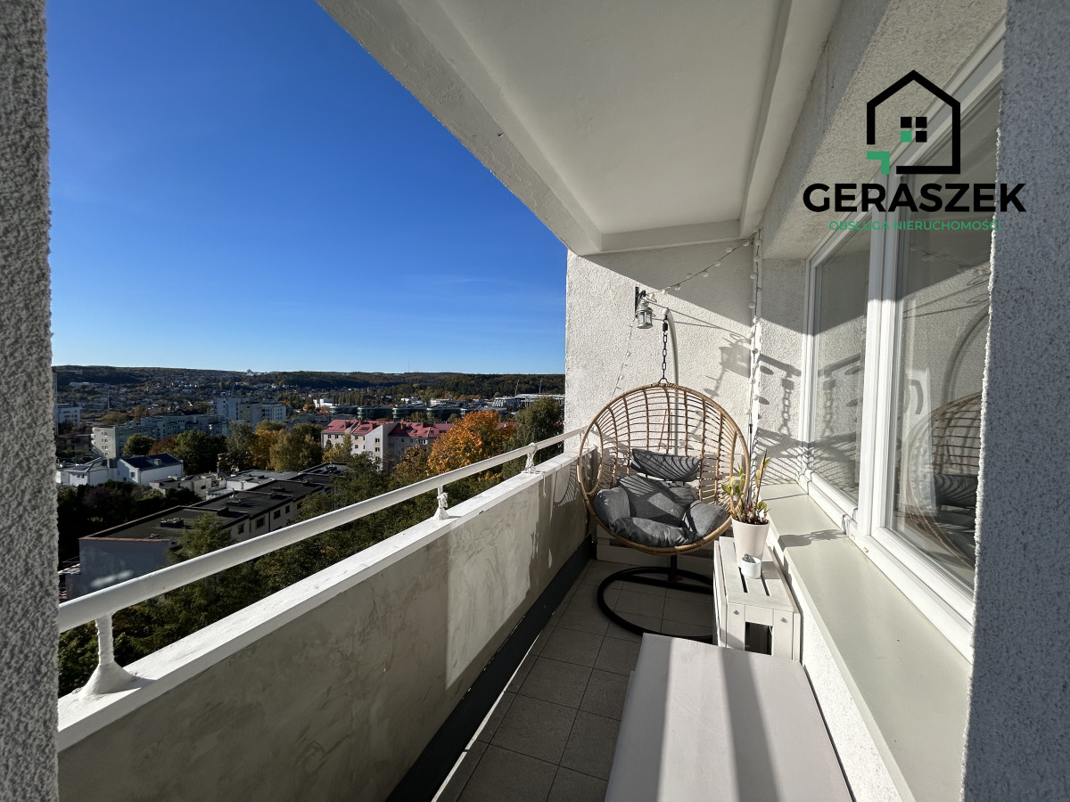 To wyjątkowe mieszkanie położone jest na 7. piętrze dziesięciopiętrowego budynku. Z balkonu roztacza się zapierający dech w piersiach widok na panoramę Gdyni.
